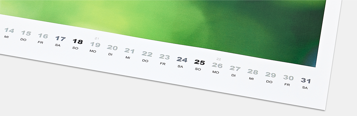 Die Verwendung von hochwertigem Markenfotopapier sorgt dafür, dass Ihr Kalender zu einem echten Qualitäts-Erlebnis wird. Darauf geben wir unsere 100% Zufriedenheitsgarantie.