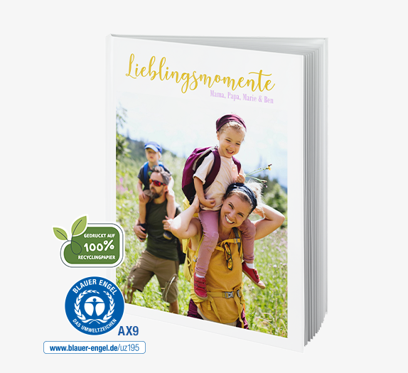 Dank des verstärkten, matten Hardcover-Einbands mit Recyclingpapier sind Ihre Erinnerungen am Natur Pur Fotobuch® jetzt noch besser geschützt.